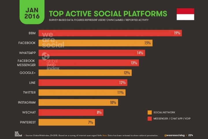 Media social 10 besar yang paling aktif di januari 2016 (from : wearesocial.com)